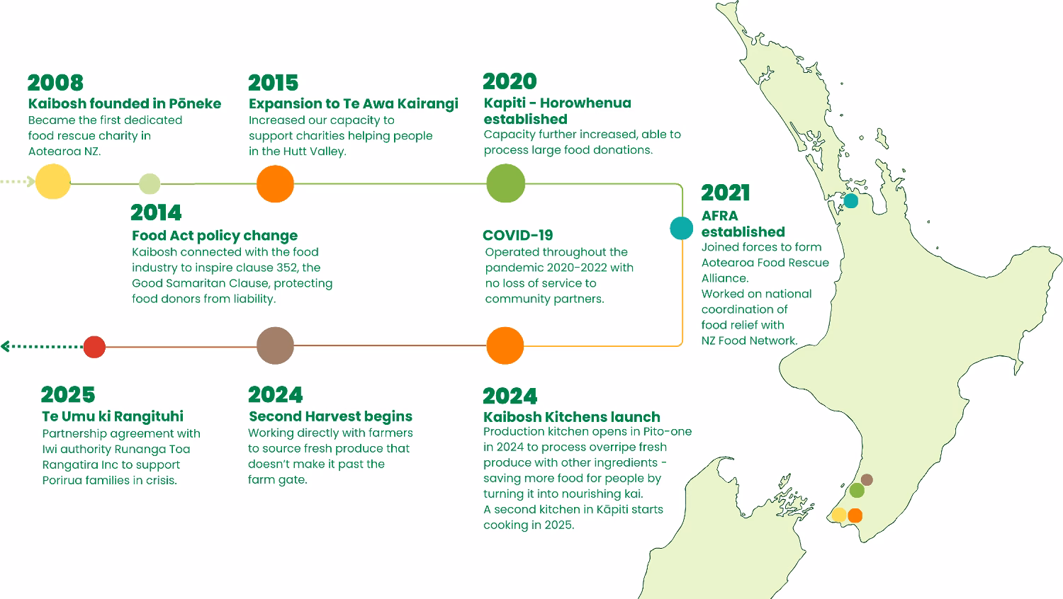 • Kaibosh, rescuing over 70,000kg of good kai every month for our local communities