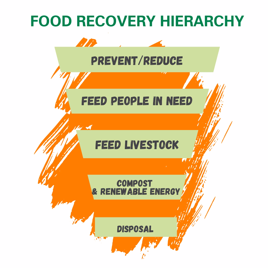 We sort food for quality and ensure good food feeds people first, then feeds animals, then to local compost. Following the food recovery heirarchy.